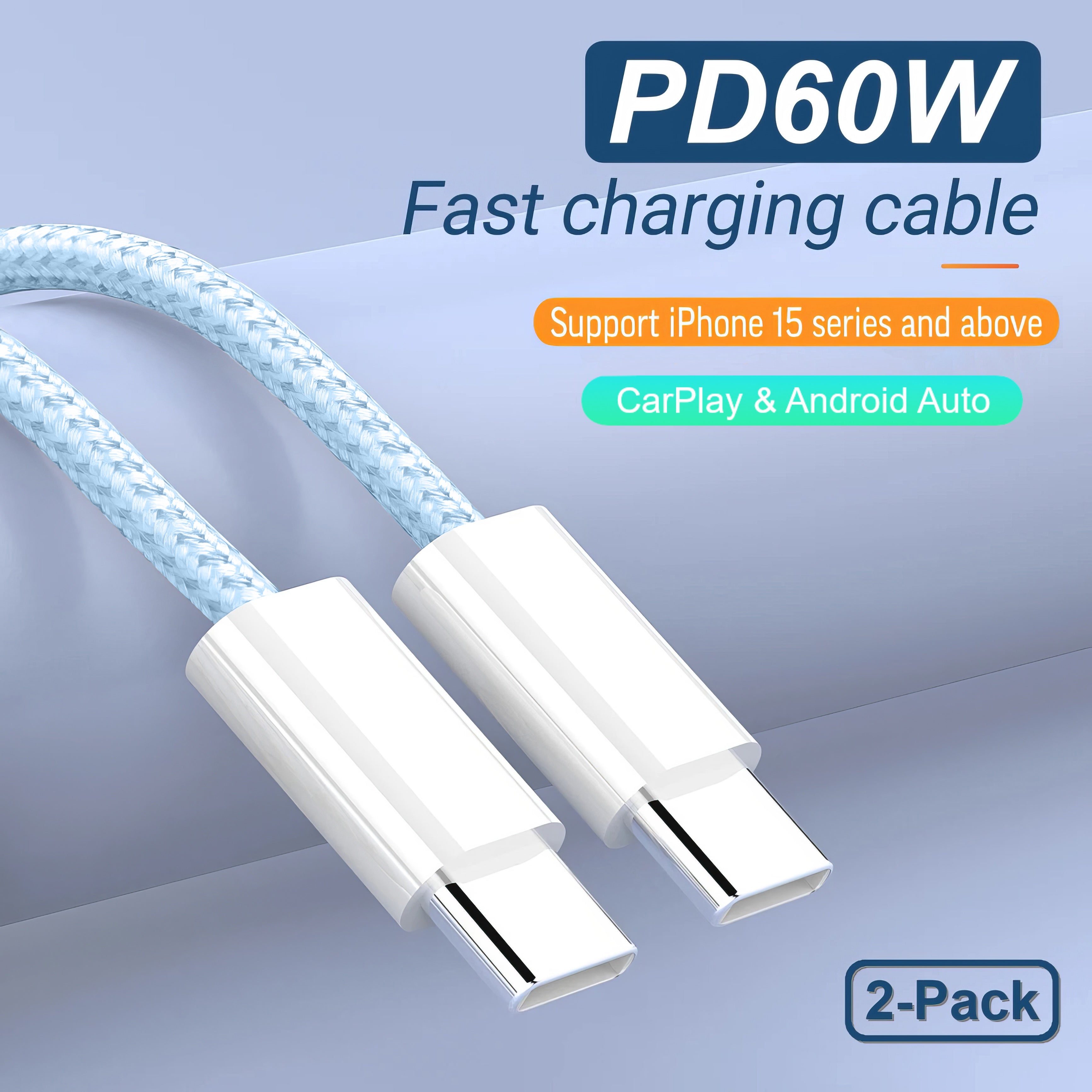 This 2‑pack of braided USB‑C to USB‑C cables delivers fast 60W power delivery, practical 3.3‑ft length, and durable build for everyday charging or syncing between modern devices.