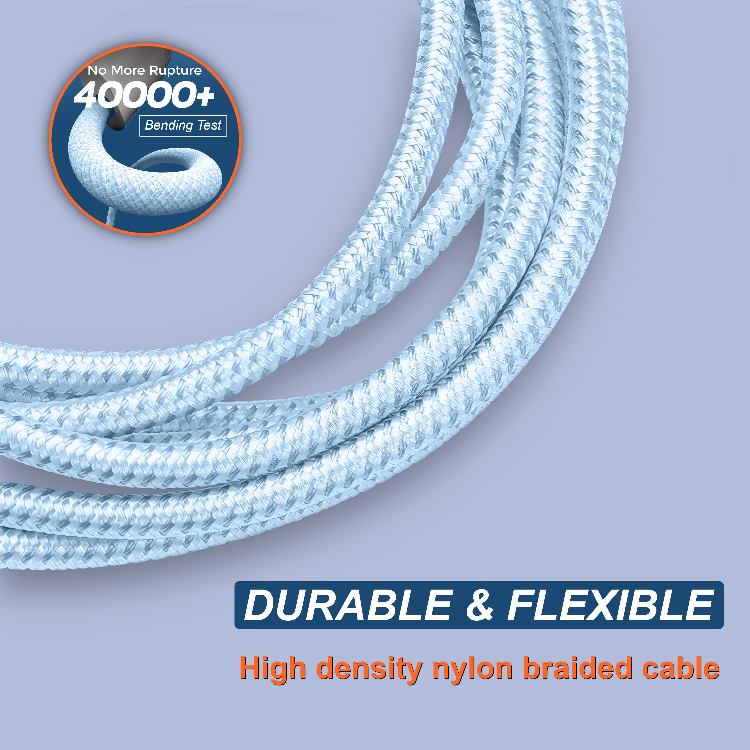 Sandblasted aluminum shell, unibody plug, and woven braided exterior with reinforced wire. Lab‑tested to withstand 40,000 bends, far surpassing typical USB‑C cables in longevity.